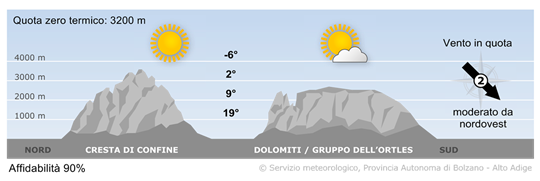 Condizioni quasi estive: Per sabato si prevede tempo soleggiato con solo qualche nube alta in cielo. Nelle vallate a nord soffierà ancora il Föhn. Temperature massime fino a 27° a sud. Anche domenica dominerà il sole con temperature primaverili. In giornata il cielo sarà attraversato da nubi alte. Lunedì in cielo si alterneranno sole e nubi. Sui gruppi meridionali nel pomeriggio saranno possibili dei rovesci. Per martedì si prevede tempo variabile con sole a tratti e alcuni rovesci.